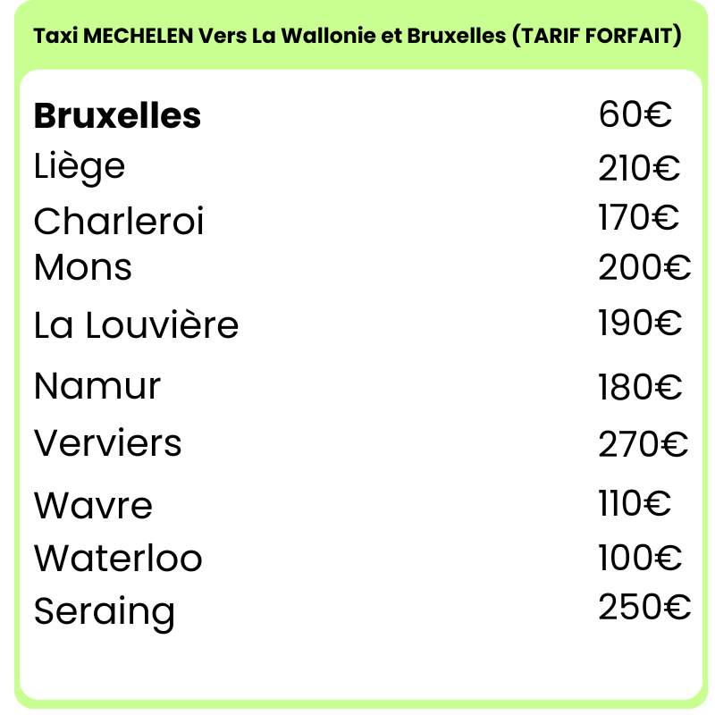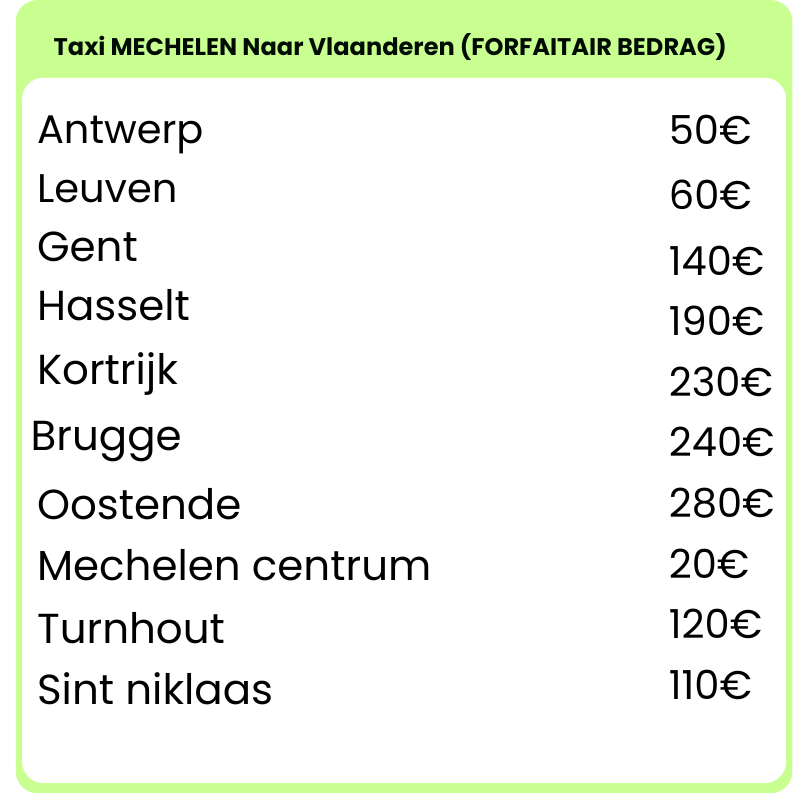 Onze forfaitaire tarieven zijn berekend vanaf het stadscentrum van de vermelde bestemming